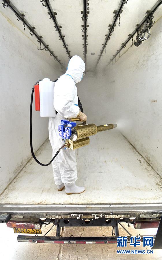 7月15日,北京二商肉類食品集團有限公司員工對冷鏈運輸設備進行消毒。北京二商肉類食品集團有限公司是保障北京肉類市場供應的主要企業(yè)之一。新冠肺炎疫情以來,企業(yè)嚴格實施北京市、農(nóng)業(yè)農(nóng)村部和中國肉類協(xié)會的防疫要求,對進入廠區(qū)的人員、車輛以及原料采購、屠宰分割、產(chǎn)品加工、貯藏運輸、廢棄物收集及污水處理等生產(chǎn)環(huán)節(jié)嚴格防疫,強調(diào)源頭把關徹底消毒。目前,集團公司下屬多家生豬屠宰加工基地正常運營,保質保量供應北京市場需求。新華社記者 李欣 攝