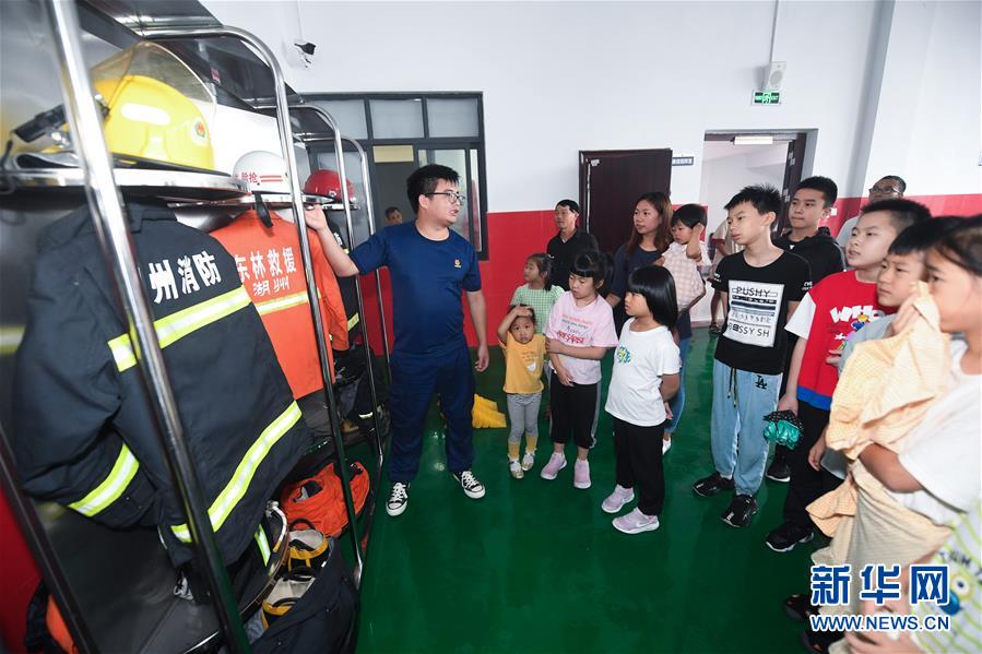 7月16日,東林鎮(zhèn)消防綜合應(yīng)急救援隊隊員在給學(xué)生們介紹消防服及消防器材。當(dāng)日,浙江省湖州市吳興區(qū)東林鎮(zhèn)舉辦暑期“安全防護小超人”主題活動。活動由醫(yī)護人員、消防隊員等為學(xué)生及家長講授日常安全避險及溺水急救知識,中小學(xué)們還在現(xiàn)場學(xué)習(xí)了簡易包扎、心肺復(fù)蘇的正確方式,并了解滅火器、滅火毯等消防器材的使用,為學(xué)生平安過暑期打好安全防護“預(yù)防針”。新華社記者 徐昱 攝