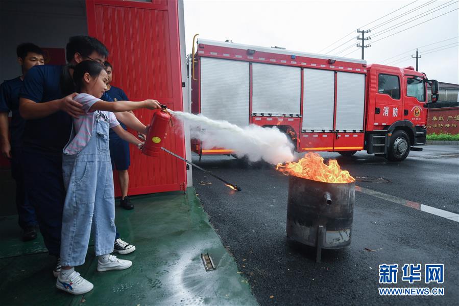 7月16日,一名小學(xué)生在東林鎮(zhèn)消防綜合應(yīng)急救援隊隊員的指導(dǎo)下學(xué)習使用滅火器。當日,浙江省湖州市吳興區(qū)東林鎮(zhèn)舉辦暑期“安全防護小超人”主題活動。活動由醫(yī)護人員、消防隊員等為學(xué)生及家長講授日常安全避險及溺水急救知識,中小學(xué)們還在現(xiàn)場學(xué)習了簡易包扎、心肺復(fù)蘇的正確方式,并了解滅火器、滅火毯等消防器材的使用,為學(xué)生平安過暑期打好安全防護“預(yù)防針”。新華社記者 徐昱 攝