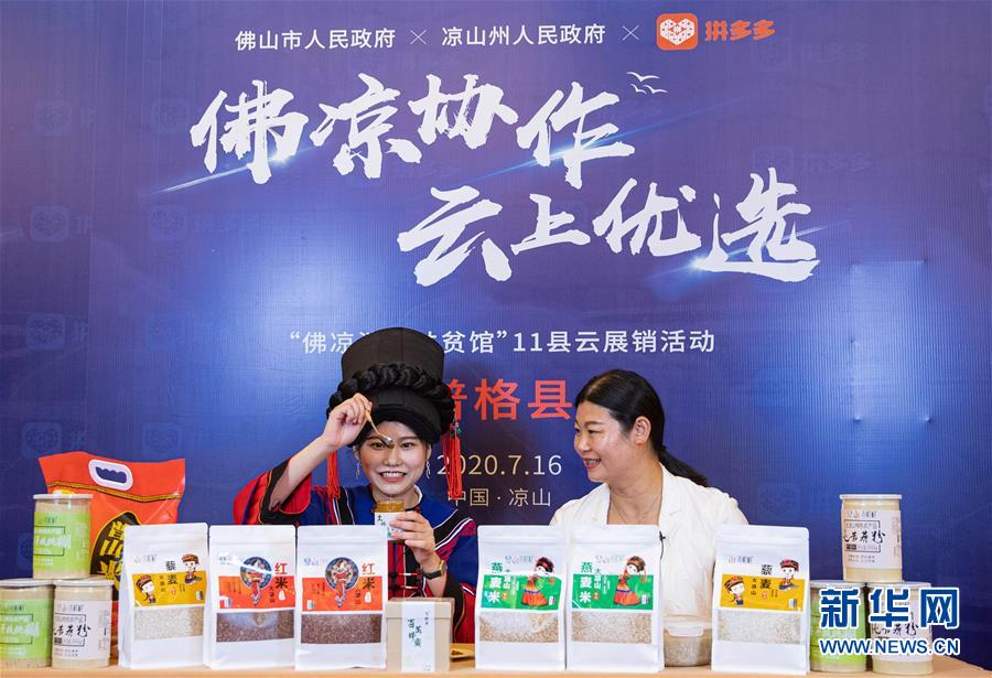 7月16日,直播主持人在電商直播間推介涼山農(nóng)特產(chǎn)品。新華社記者江宏景攝