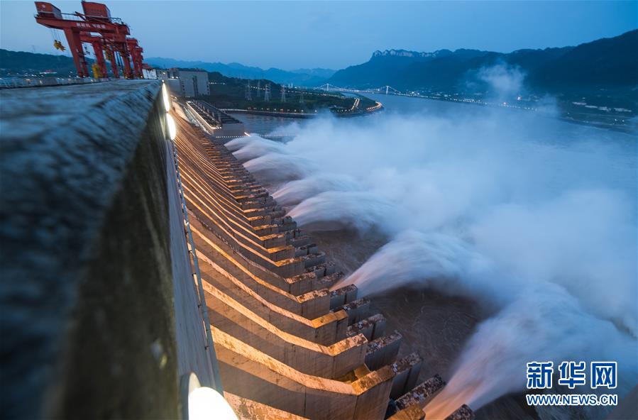 7月19日,三峽樞紐開啟泄洪深孔泄洪。19日20時(shí),三峽水庫入庫流量4.6萬立方米/秒,較本輪洪水的峰值6.1萬立方米/秒下降了1.5萬立方米/秒。“長江2020年第2號(hào)洪水”平穩(wěn)通過三峽大壩。新華社記者肖藝九攝