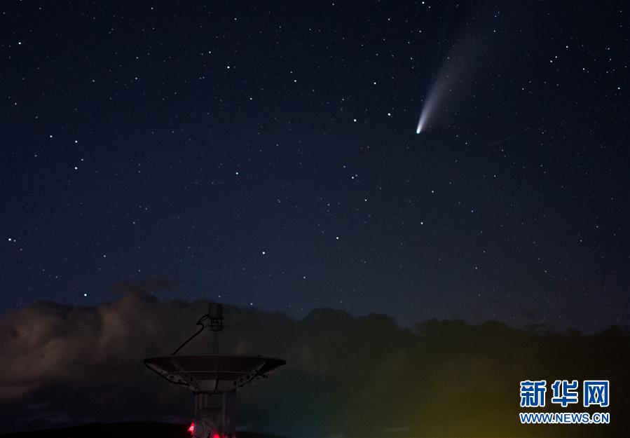 7月18日晚,在明安圖觀測基地,尼歐懷茲彗星劃過天際。7月18日晚至19日凌晨,在位于內(nèi)蒙古錫林郭勒盟正鑲白旗境內(nèi)的國家天文臺明安圖觀測基地,尼歐懷茲彗星劃過天際。在明安圖觀測基地內(nèi),排列著100面白色的拋物面天線。這個龐大的天線陣列便是草原“天眼”——明安圖射電頻譜日像儀。草原“天眼”持續(xù)接收太陽射電輻射,然后由科研人員進(jìn)行數(shù)據(jù)分析研究,對空間環(huán)境監(jiān)測、太陽活動預(yù)報均有重要作用。新華社記者連振攝