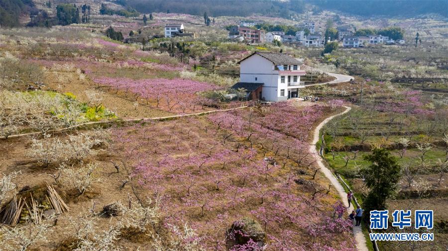 這是3月26日拍攝的四川省漢源縣雙溪鄉(xiāng)申溝村萬畝桃園一角(無人機(jī)照片)。新華社記者王曦?cái)z