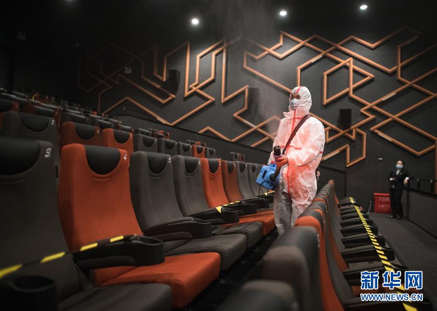 7月20日,武漢一家影院工作人員開展消殺作業(yè)。當日,在各項疫情防控措施有效落實到位的前提下,武漢市部分電影院恢復(fù)開放。新華社記者肖藝九攝