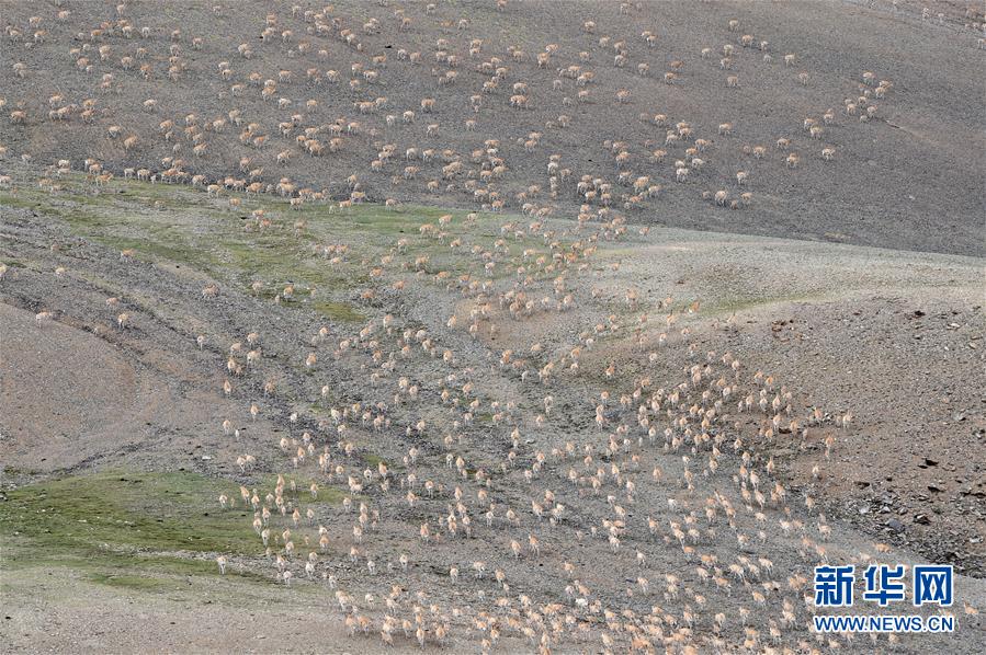 7月17日,藏羚羊群在西藏尼瑪縣榮瑪鄉(xiāng)附近悠閑吃草。2000年,西藏羌塘自然保護(hù)區(qū)晉升為國(guó)家級(jí)自然保護(hù)區(qū)。20年來(lái),經(jīng)過(guò)西藏各級(jí)各部門(mén)的不懈努力,羌塘國(guó)家級(jí)自然保護(hù)區(qū)內(nèi)的重點(diǎn)保護(hù)野生動(dòng)物種群數(shù)量明顯增加,其中,藏羚羊種群數(shù)量由原來(lái)的5至7萬(wàn)只,恢復(fù)到目前的15萬(wàn)只以上。羌塘國(guó)家級(jí)自然保護(hù)區(qū)核心地帶的西藏尼瑪縣榮瑪鄉(xiāng)附近,目前就有近6萬(wàn)只藏羚羊。新華社記者覺(jué)果攝
