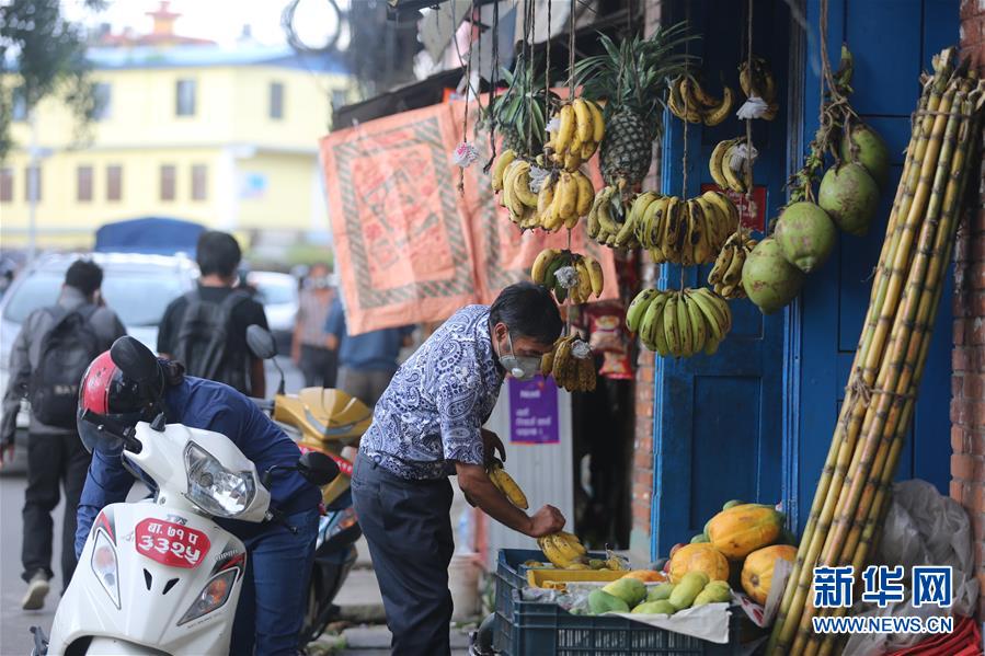 7月22日,一名男子在位于尼泊爾加德滿都的一個(gè)水果攤前整理香蕉。尼泊爾政府21日宣布,自22日零時(shí)起結(jié)束因新冠疫情而實(shí)施的全國(guó)封鎖措施。目前,尼境內(nèi)新冠疫情出現(xiàn)放緩跡象。據(jù)尼衛(wèi)生與人口部21日公布的最新數(shù)據(jù),過(guò)去24小時(shí),全國(guó)新增確診病例150例,確診病例總數(shù)達(dá)17994例。為防范新冠疫情蔓延,尼政府從3月24日開(kāi)始實(shí)施全國(guó)封鎖。新華社記者周盛平攝
