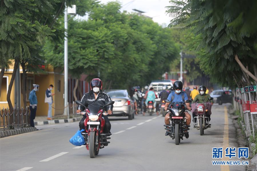 7月22日,人們騎摩托車(chē)行駛在尼泊爾加德滿都街頭。尼泊爾政府21日宣布,自22日零時(shí)起結(jié)束因新冠疫情而實(shí)施的全國(guó)封鎖措施。目前,尼境內(nèi)新冠疫情出現(xiàn)放緩跡象。據(jù)尼衛(wèi)生與人口部21日公布的最新數(shù)據(jù),過(guò)去24小時(shí),全國(guó)新增確診病例150例,確診病例總數(shù)達(dá)17994例。為防范新冠疫情蔓延,尼政府從3月24日開(kāi)始實(shí)施全國(guó)封鎖。新華社記者周盛平攝