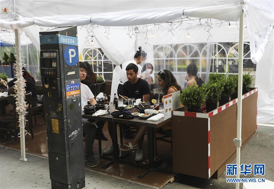 7月23日,在美國(guó)紐約,人們?cè)趹?hù)外就餐區(qū)用餐。美國(guó)約翰斯·霍普金斯大學(xué)23日發(fā)布的新冠疫情最新統(tǒng)計(jì)數(shù)據(jù)顯示,美國(guó)累計(jì)確診病例超過(guò)400萬(wàn)例。數(shù)據(jù)顯示,截至美國(guó)東部時(shí)間23日15時(shí)34分(北京時(shí)間24日3時(shí)34分),美國(guó)累計(jì)確診病例4007859例,累計(jì)死亡病例143846例。新華社記者王迎攝
