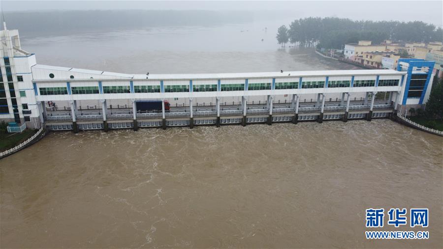 這是7月23日在安徽省阜南縣拍攝的正在關(guān)閘的淮河王家壩閘(無人機照片)。當日13時,淮河干流王家壩閘關(guān)閘,停止向蒙洼蓄洪區(qū)泄洪。新華社記者張端攝