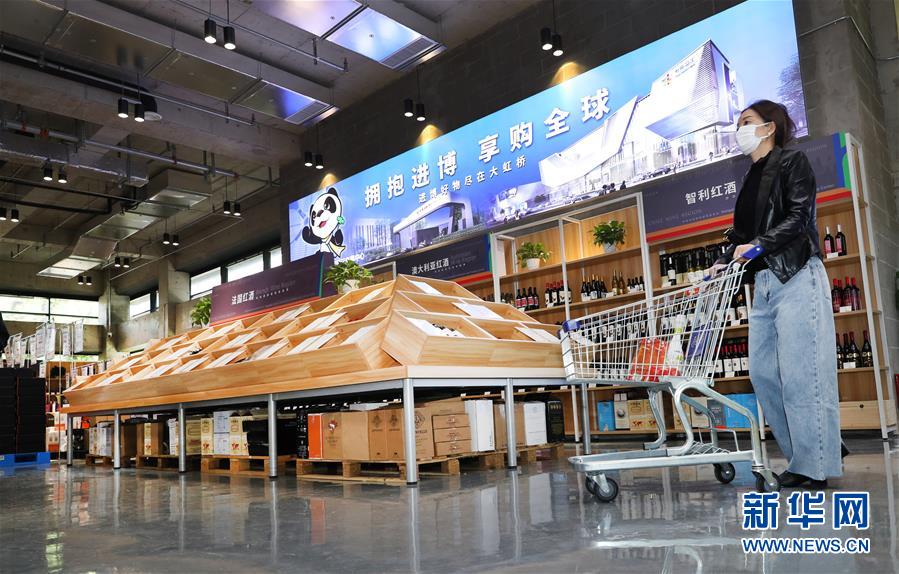 2020年4月25日,“擁抱進(jìn)博·享購全球”虹橋品匯食品健康館在上海虹橋進(jìn)口商品展示交易中心開業(yè),顧客在虹橋品匯食品健康館購物。新華社記者 方喆 攝