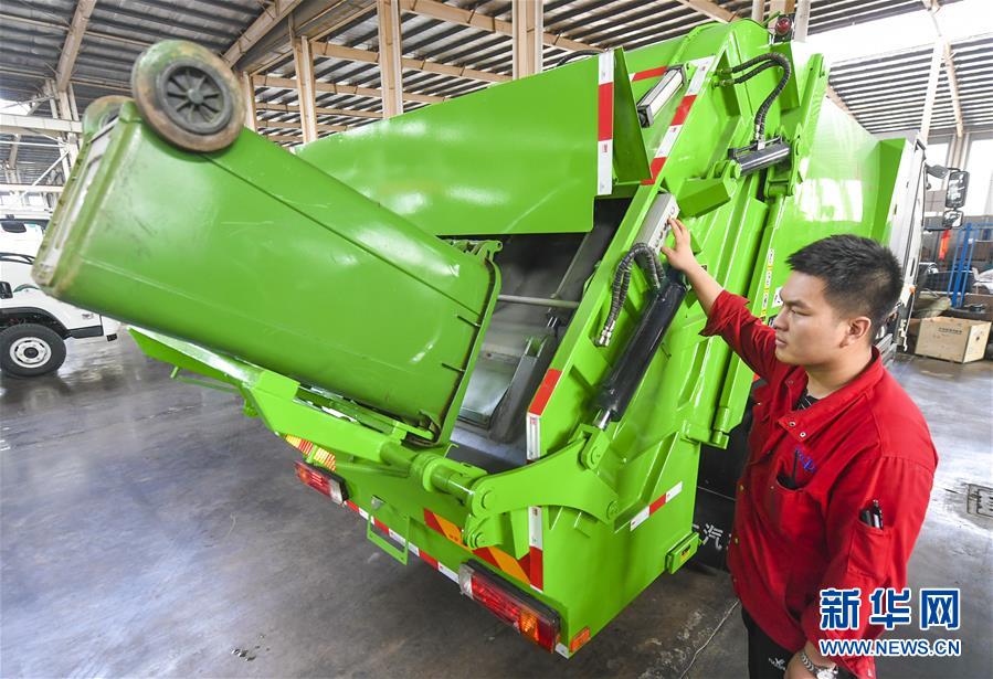 近年來(lái),河北景縣大力支持環(huán)衛(wèi)車(chē)制造企業(yè)技術(shù)創(chuàng)新和新產(chǎn)品研發(fā)力度,加強(qiáng)純電動(dòng)環(huán)衛(wèi)車(chē)輛的產(chǎn)品開(kāi)發(fā)。目前,位于該縣開(kāi)發(fā)區(qū)的新能源汽車(chē)制造公司已完成灑水車(chē)、洗掃車(chē)、抑塵車(chē)、多功能清洗車(chē)等多款純電動(dòng)新能源環(huán)衛(wèi)車(chē)的研發(fā)。新華社記者 李曉果 攝