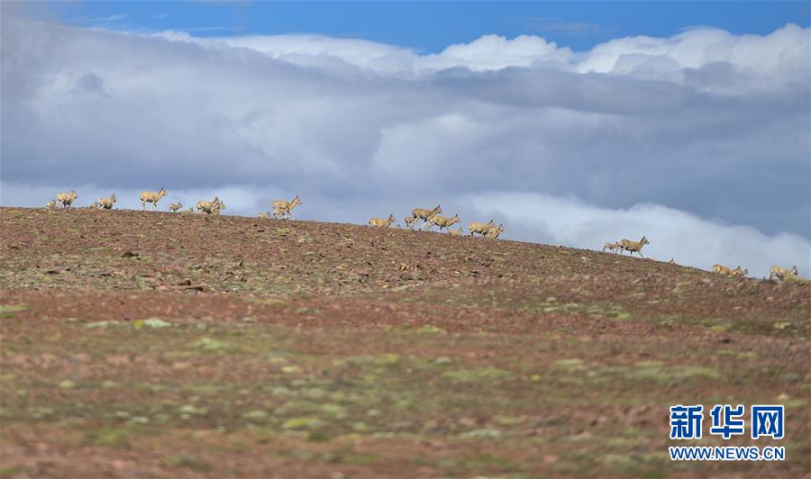 這是7月7日在可可西里卓乃湖區(qū)域拍攝的藏羚羊。新華社記者張龍攝