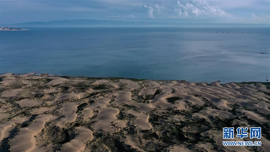 這是7月28日拍攝的青海湖沙島一隅(無人機照片)。盛夏傍晚,位于青海湖東北部的沙島,島內湖泊星羅棋布,沙丘連綿起伏,風景別致。金沙與湖水掩映,在陽光的勾勒下形成一幅美麗的畫卷。新華社記者吳剛攝