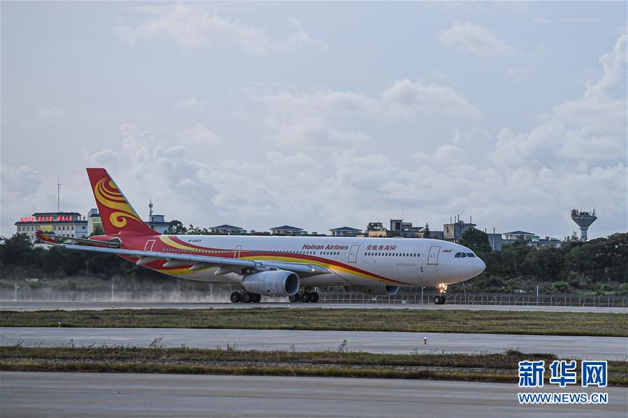 這是7月30日在??诿捞m國際機(jī)場二期擴(kuò)建項目拍攝的試飛現(xiàn)場。新華社記者蒲曉旭攝