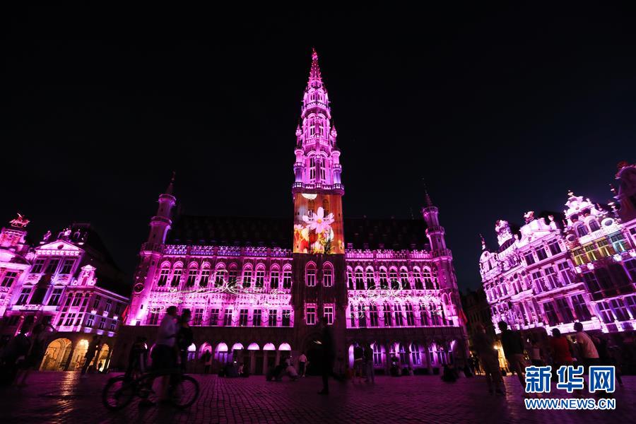 7月29日,人們?cè)诒壤麜r(shí)布魯塞爾大廣場(chǎng)欣賞聲光秀,市政廳外墻上投射出鮮花地毯主題的圖案。7月29日,比利時(shí)布魯塞爾大廣場(chǎng)舉行大型聲光秀。藝術(shù)家在市政廳等歷史建筑上投影文字和圖案,紀(jì)念這個(gè)夏天受新冠疫情影響而不能如期舉辦的文化活動(dòng)。新華社記者鄭煥松攝