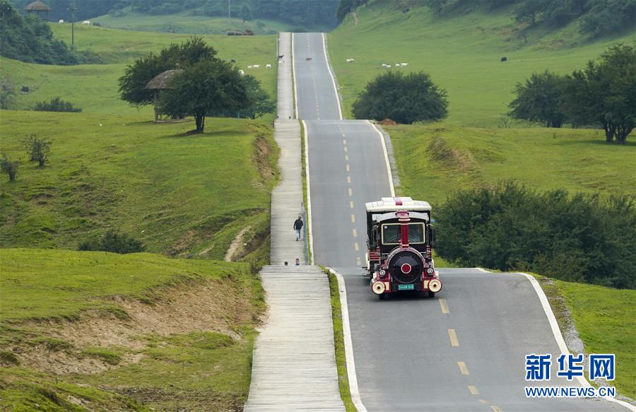 7月30日,小火車載著游客行駛在仙女山國(guó)家森林公園。
