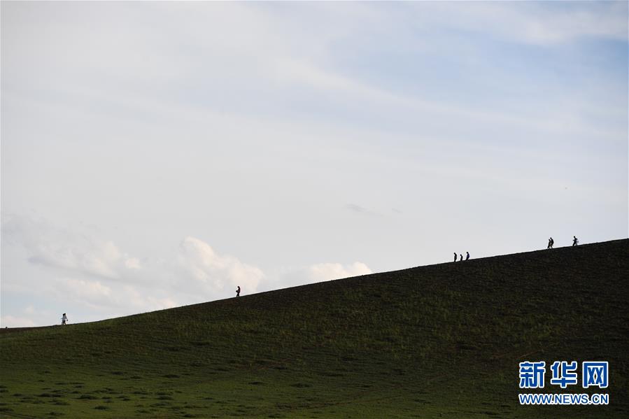 7月29日,游客在烏蘭哈達(dá)火山地質(zhì)公園游玩。新華社記者劉磊攝