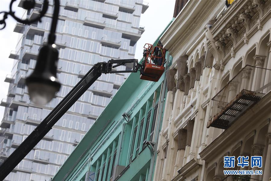 7月30日,在美國(guó)紐約蘇豪商業(yè)區(qū),工人在一棟建筑外作業(yè)。美國(guó)商務(wù)部30日公布的首次預(yù)估數(shù)據(jù)顯示,受新冠疫情導(dǎo)致經(jīng)濟(jì)大面積“停擺”和消費(fèi)停滯拖累,今年第二季度美國(guó)實(shí)際國(guó)內(nèi)生產(chǎn)總值(GDP)按年率計(jì)算下滑32.9%,創(chuàng)1947年有記錄以來(lái)最大降幅。新華社記者王迎攝