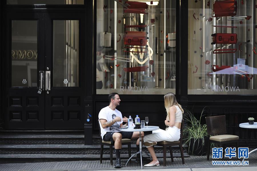 7月30日,在美國(guó)紐約蘇豪商業(yè)區(qū),人們?cè)谝患也蛷d的戶外就餐區(qū)用餐。美國(guó)商務(wù)部30日公布的首次預(yù)估數(shù)據(jù)顯示,受新冠疫情導(dǎo)致經(jīng)濟(jì)大面積“停擺”和消費(fèi)停滯拖累,今年第二季度美國(guó)實(shí)際國(guó)內(nèi)生產(chǎn)總值(GDP)按年率計(jì)算下滑32.9%,創(chuàng)1947年有記錄以來(lái)最大降幅。新華社記者王迎攝