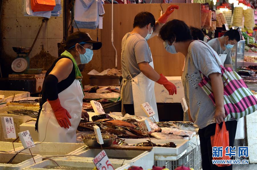 8月1日,市民在香港街頭購(gòu)買鮮魚。新華社記者盧炳輝攝