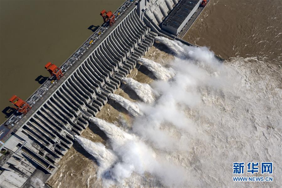 8月2日,江水通過三峽大壩下泄(無人機(jī)照片)。據(jù)水利部長(zhǎng)江水利委員會(huì)消息,7月以來,長(zhǎng)江流域共出現(xiàn)6次強(qiáng)降雨過程,長(zhǎng)江上游先后發(fā)生3次編號(hào)洪水。為減輕中下游防洪壓力,包括三峽、葛洲壩在內(nèi)的長(zhǎng)江中上游水庫群共攔洪300多億立方米。新華社記者杜華舉攝