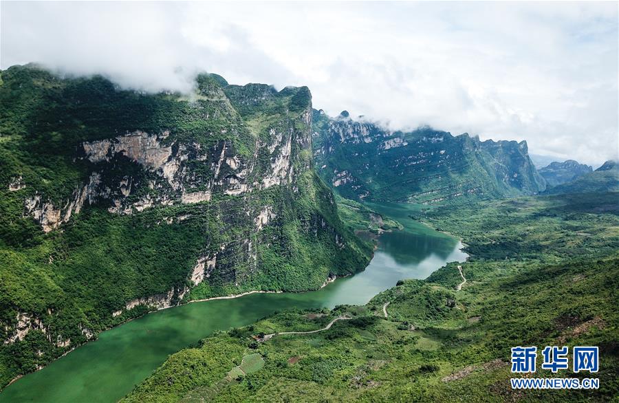 貴州北盤江大峽谷國家濕地公園風景(無人機照片,2018年8月7日攝)。新華社記者陶亮攝