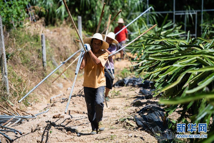 8月3日,在碗米坡鎮(zhèn)首八峒村,村民在搶修大棚。新華社記者陳思汗攝