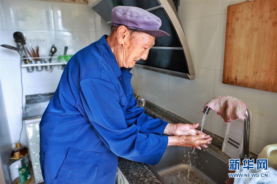 石連英在柏楊林易地扶貧搬遷安置點(diǎn)家中洗手(8月3日攝)。貴州省畢節(jié)市七星關(guān)區(qū)柏楊林易地扶貧搬遷安置點(diǎn)是畢節(jié)市最大的易地扶貧搬遷安置點(diǎn),總面積約1.1平方公里,從2017年開始至今,共有34個鄉(xiāng)鎮(zhèn)6372戶29001人安置到位。如今,安置點(diǎn)內(nèi)教育、醫(yī)療、就業(yè)扶貧車間、長幼日間托養(yǎng)照料中心等設(shè)施齊全,搬遷群眾在這里過上了安居樂業(yè)的幸福生活。新華社記者劉續(xù)攝