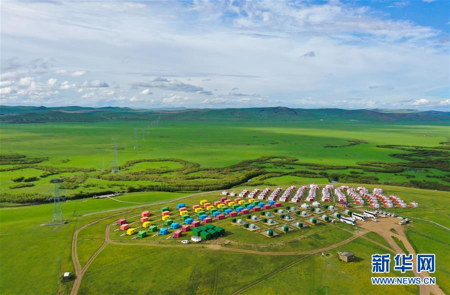 這是呼倫貝爾陳巴爾虎旗天下草原游牧部落一景(8月3日攝,無人機(jī)照片)。今年暑期,內(nèi)蒙古呼倫貝爾通過暫行周末2.5天彈性休假工作制度,發(fā)放旅游、餐飲消費(fèi)券,景區(qū)推出優(yōu)惠促銷活動(dòng)等措施,提振當(dāng)?shù)芈糜问袌?chǎng)。新華社記者徐欽攝