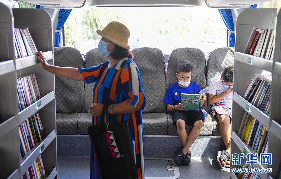 8月5日,小讀者在“流動圖書館”里看書。三千冊圖書,一輛大巴車,穿梭在城市的街頭巷尾。在吉林長春,長春市圖書館利用流動圖書車,定期在市內(nèi)15個固定服務(wù)點間巡回流動,為市民提供便捷的圖書借閱服務(wù)。新華社記者許暢攝