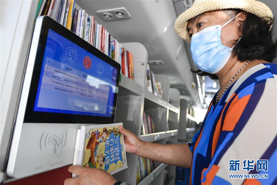 8月5日,長春市民在“流動(dòng)圖書館”里自助辦理圖書借閱。三千冊圖書,一輛大巴車,穿梭在城市的街頭巷尾。在吉林長春,長春市圖書館利用流動(dòng)圖書車,定期在市內(nèi)15個(gè)固定服務(wù)點(diǎn)間巡回流動(dòng),為市民提供便捷的圖書借閱服務(wù)。新華社記者許暢攝