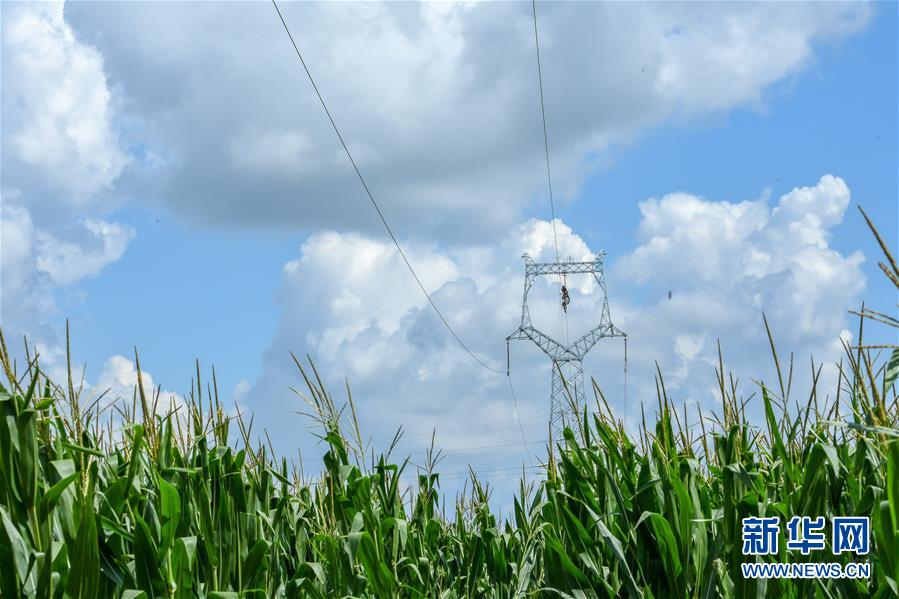 8月6日,送電工在吉林省長(zhǎng)春市城郊的一處輸電鐵塔上施工作業(yè)。吉林省長(zhǎng)春市連續(xù)多日出現(xiàn)高溫天氣,國(guó)網(wǎng)長(zhǎng)春供電公司輸電運(yùn)檢中心的送電工們每天清晨開始作業(yè),不畏烈日“烤”驗(yàn),堅(jiān)守工作崗位,確保工程按計(jì)劃完成。新華社記者張楠攝