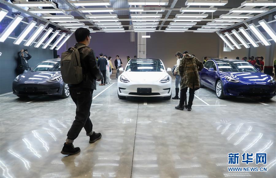 這是1月7日在特斯拉上海超級工廠拍攝的中國制造Model3汽車。新華社記者方喆攝
