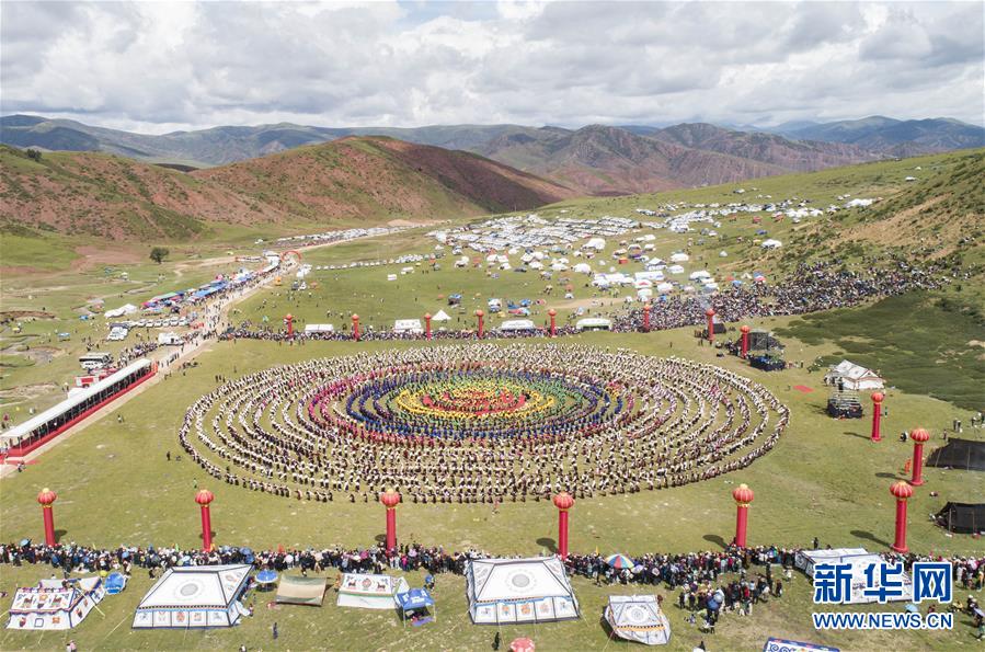 西藏首屆弦子舞展演現(xiàn)場(chǎng)(8月7日攝,無(wú)人機(jī)照片)。當(dāng)日,西藏首屆弦子舞展演在昌都市芒康縣舉行。眾多演員同臺(tái)獻(xiàn)藝,表演國(guó)家級(jí)非物質(zhì)文化遺產(chǎn)弦子舞,吸引西藏各地的群眾前來(lái)觀看。新華社記者孫非攝