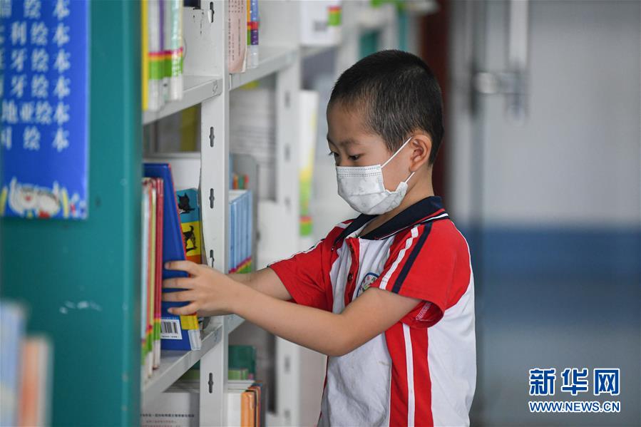8月8日,小朋友在位于海口的海南省圖書(shū)館查找圖書(shū)。新華社記者 蒲曉旭 攝