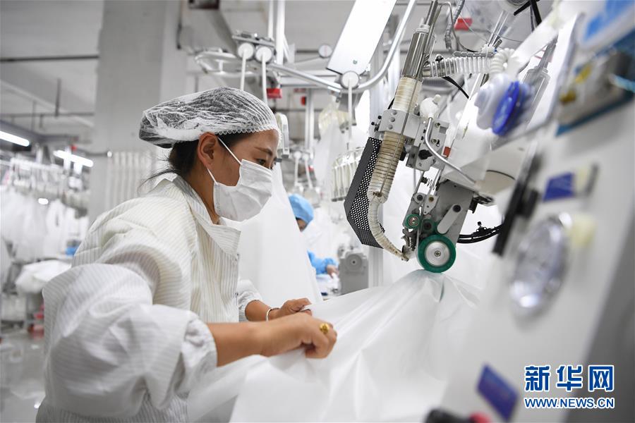 8月9日,甘肅拓奇扶貧車間的員工在服裝加工生產(chǎn)線上作業(yè)。甘肅拓奇扶貧車間位于甘肅省臨夏回族自治州積石山縣,是依托東西部扶貧協(xié)作平臺引進(jìn)的服裝加工企業(yè)。扶貧車間建成投產(chǎn)以來帶動就業(yè)近300人,其中吸納建檔立卡貧困戶就業(yè)110人,實現(xiàn)了貧困群眾就地就近就業(yè)增收的目的,為助推當(dāng)?shù)孛撠毠约翱h域經(jīng)濟(jì)發(fā)展發(fā)揮了重要作用。新華社記者陳斌攝。