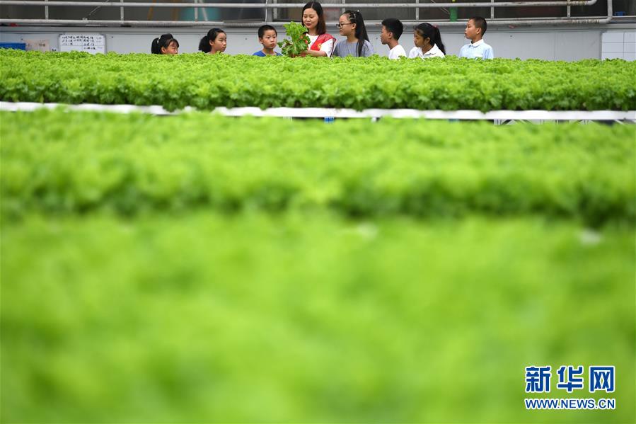 8月9日,在花崗鎮(zhèn)現(xiàn)代農(nóng)業(yè)示范區(qū)一家蔬菜種植企業(yè)內(nèi),志愿者向小朋友介紹蔬菜種植模式。當日,安徽省肥西縣花崗鎮(zhèn)開展暑期“親近自然體驗田園”活動,邀請轄區(qū)兒童參觀花崗鎮(zhèn)現(xiàn)代農(nóng)業(yè)示范區(qū),感受現(xiàn)代農(nóng)業(yè)的魅力。新華社記者劉軍喜攝。