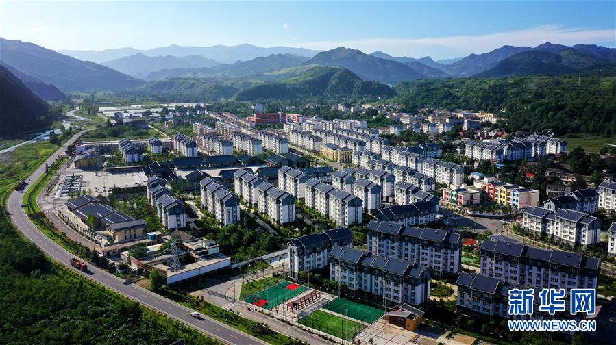 陜西洛南縣保安鎮(zhèn)倉圣社區(qū)移民搬遷集中安置點(7月27日攝,無人機照片)。