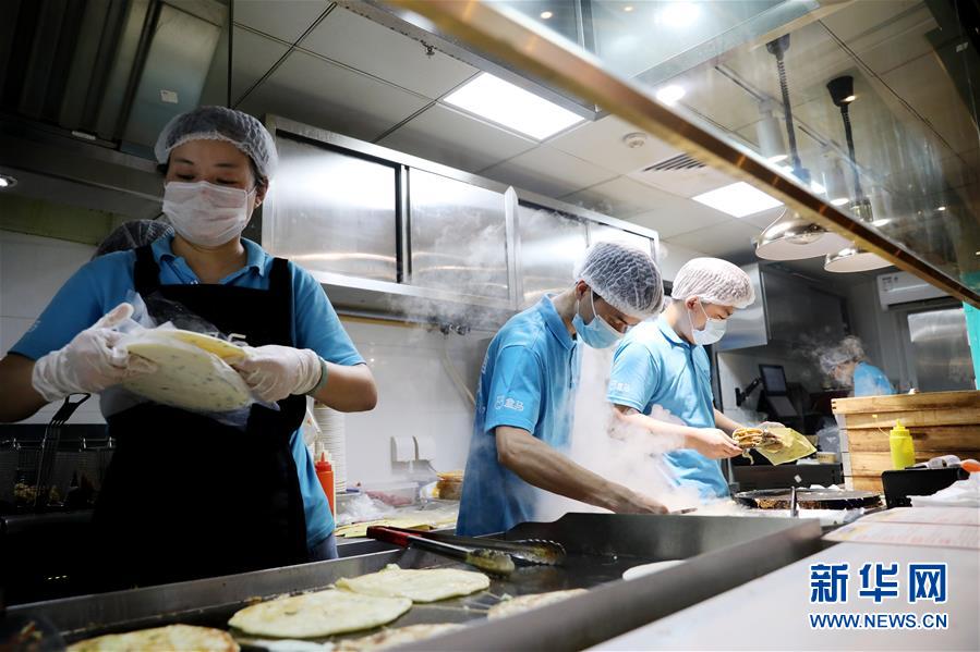 在上海地鐵13號線世博會博物館地鐵站附近的一家盒小馬服務(wù)點(diǎn),工作人員在制作煎餅果子等早餐餐品(7月17日攝)。近年來,在上海崛起了一批以盒馬、叮咚、拼多多為代表的在線經(jīng)濟(jì)新力量,在助力脫貧攻堅(jiān)、提升城市居民品質(zhì)生活方面發(fā)揮著重要作用。電商加持下的“云農(nóng)業(yè)”加速發(fā)展,一端為市民提供更便宜新鮮的農(nóng)產(chǎn)品,另一端讓山區(qū)的優(yōu)質(zhì)產(chǎn)品加速進(jìn)入城市餐桌,化解交通不便、農(nóng)產(chǎn)品滯銷等問題。新華社記者方喆攝。