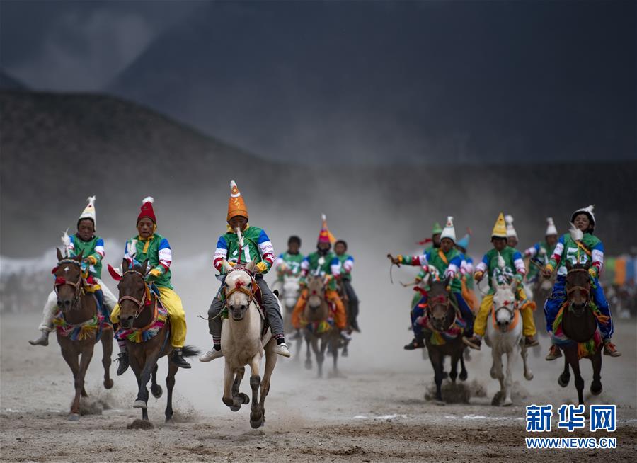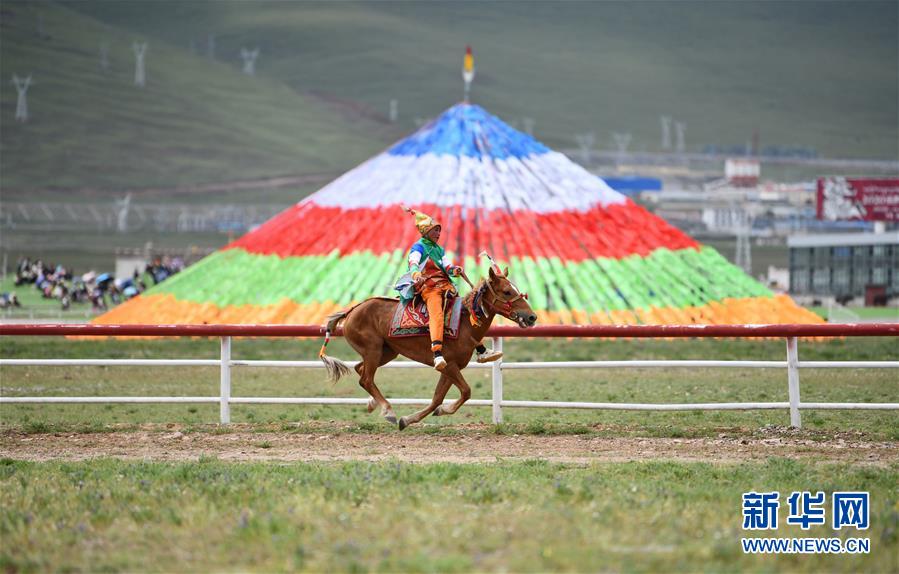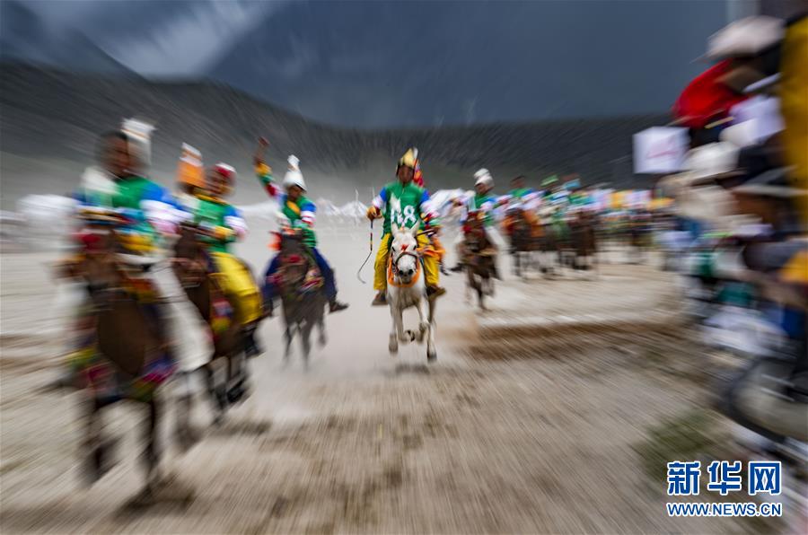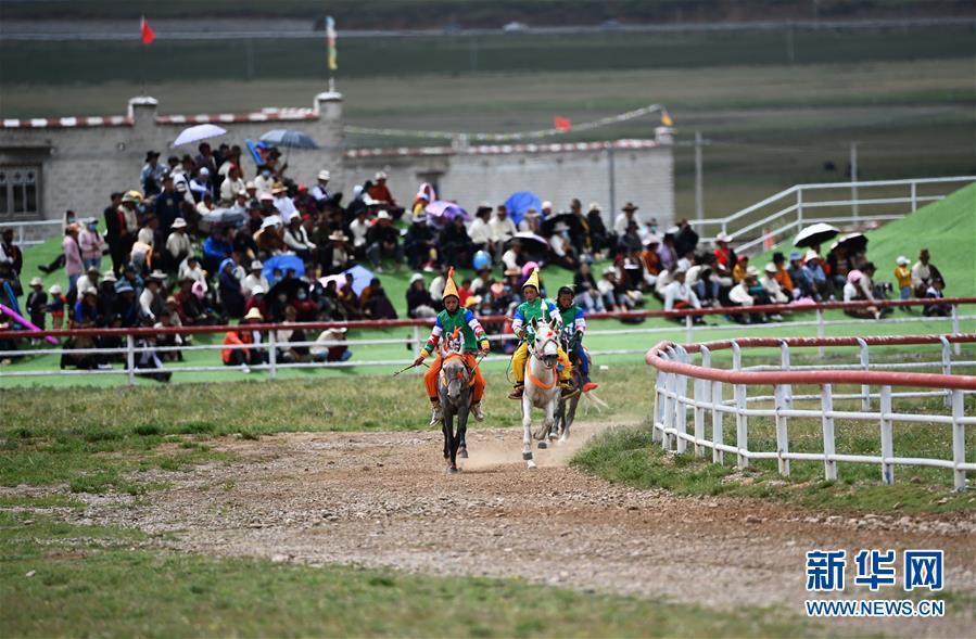 8月10日,騎手馳騁在當雄縣賽馬場。新華社記者普布扎西攝。