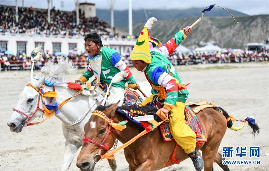 8月10日,騎手馳騁在當雄縣賽馬場。
