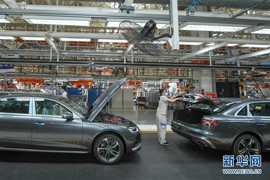 8月10日,在一汽-大眾長(zhǎng)春基地總裝車(chē)間,工人檢查裝配好的車(chē)輛。中國(guó)第一汽車(chē)集團(tuán)有限公司7月銷(xiāo)售整車(chē)32.2萬(wàn)輛,同比增長(zhǎng)23.2%,延續(xù)上半年的增長(zhǎng)態(tài)勢(shì)。新華社記者張楠攝。