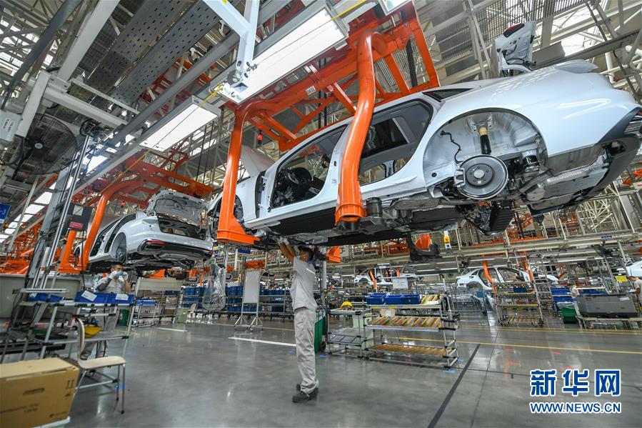 8月10日,在一汽-大眾長(zhǎng)春基地總裝車(chē)間,工人在裝配車(chē)輛。中國(guó)第一汽車(chē)集團(tuán)有限公司7月銷(xiāo)售整車(chē)32.2萬(wàn)輛,同比增長(zhǎng)23.2%,延續(xù)上半年的增長(zhǎng)態(tài)勢(shì)。新華社記者張楠攝。
