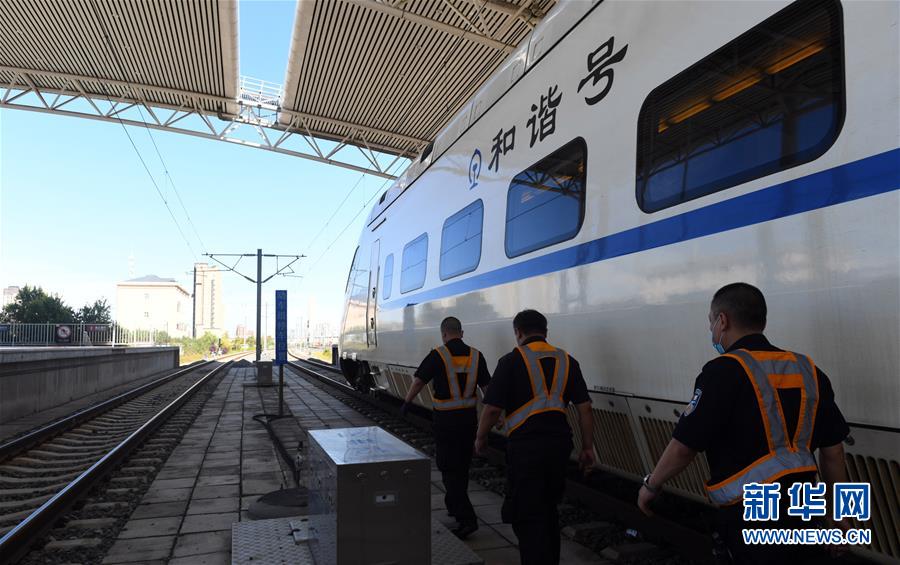 8月12日,長(zhǎng)春火車站客運(yùn)車間上水班組趕往下一個(gè)作業(yè)站臺(tái)。新華社記者 林宏 攝