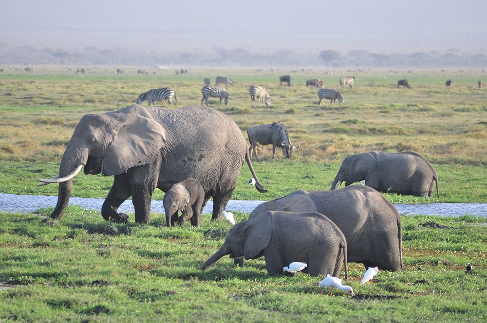 如今在肯尼亞,大象已經受到最為嚴格的保護,安博塞利國家公園就是一座野生草原象的保護地。圖為野生大象家園里的大象。李仁奇 攝