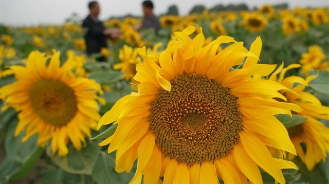 甘肅景泰:十萬畝向日葵“笑”迎豐收