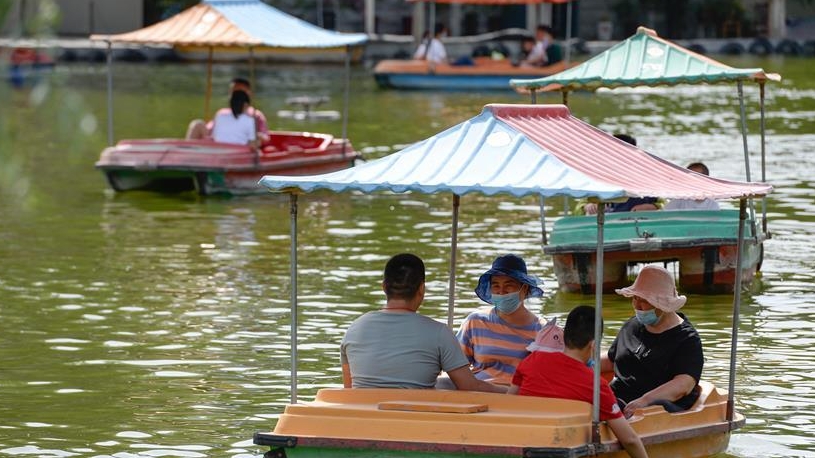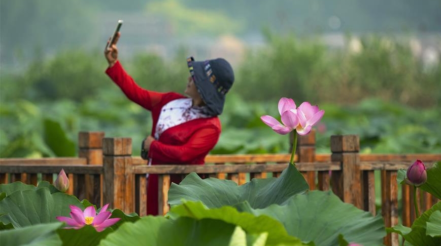 近日,河北省唐山市南湖公園內荷花競相綻放,呈現出“接天蓮葉無窮碧,映日荷花別樣紅”的美麗景象,吸引了眾多游客前來觀賞。