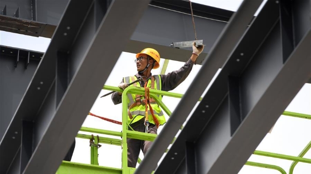 這是6月10日拍攝的已經(jīng)完成主體結(jié)構(gòu)和現(xiàn)場屋面施工的武漢琴臺美術(shù)館(無人機照片)。