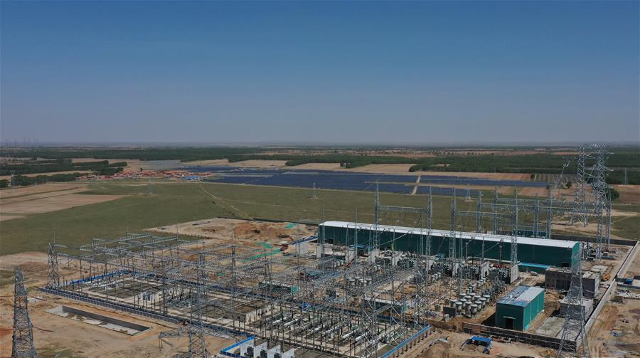 6月3日拍攝的張家口市張北1000千伏特高壓變電站建設(shè)工地。