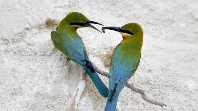 近日,大批栗喉蜂虎來到廈門五緣灣栗喉蜂虎自然保護(hù)區(qū)棲息、繁殖。